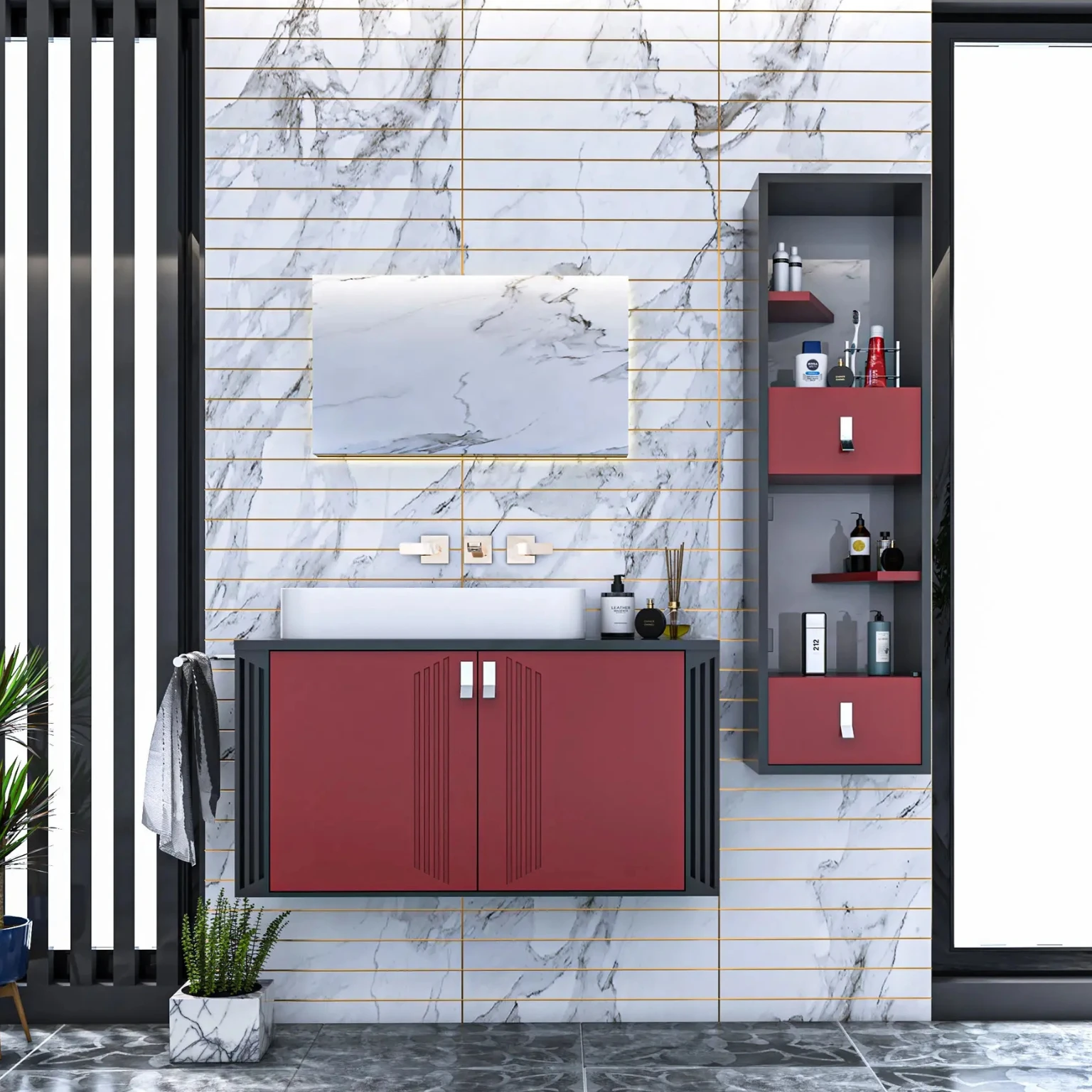 Frame 65/80/100 cm Mdf Ledli Dikdörtgen Aynalı & Çanak Lavabolu Banyo Mobilyası